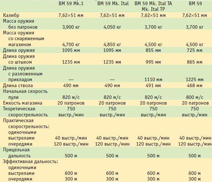 Тактико-технические характеристики винтовок «Beretta» ВМ 59
