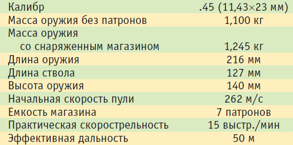 Тактико-технические характеристики пистолета «Colt» М 1911