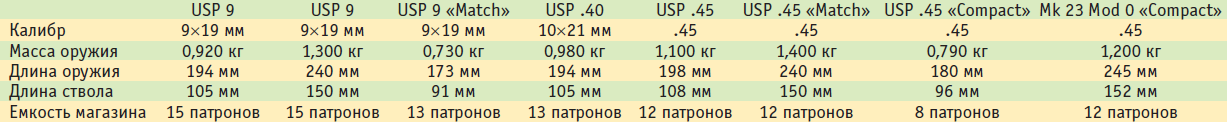 Тактико-технические характеристики пистолетов «Heckler & Koch» USP