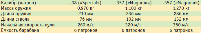 Тактико-технические характеристики револьверов «Ruger» GP 100