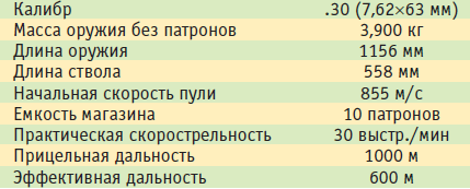 Ствол калибра 7,62 мм имеет четыре правосторонних нареза. Ствол снабжен коротким кожухом с отверстиями для охлаждения. Винтовка может стрелять только одиночным огнем. Заряжается из неотъемного магазина барабанного типа емкостью 10 патронов.