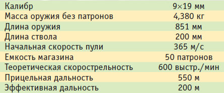 Ствол калибра 9 мм с шестью правосторонними нарезами находится в металлическом кожухе с многочисленными отверстиями для охлаждения. Предусмотрено приспособление для крепления штыка.
