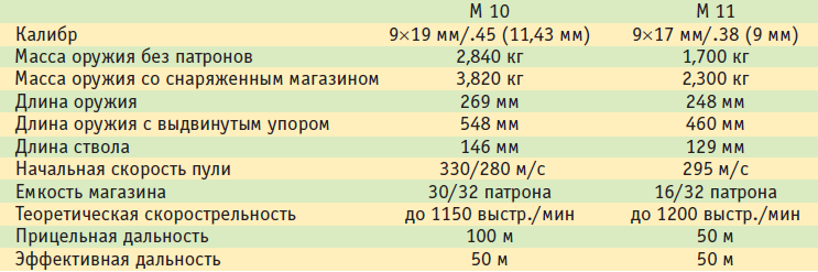 Более совершенной и надежной моделью стал пистолет-пулемет М11, выпущенный в 1986 г. Он еще больше уменьшился в размерах и весе, а его огневые характеристики были несколько улучшены за счет использования укороченных патронов «Short» калибра 9×17 мм.