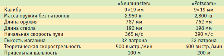 Тактико-технические характеристики пистолетов-пулеметов «Potsdam» и «Neumunster»