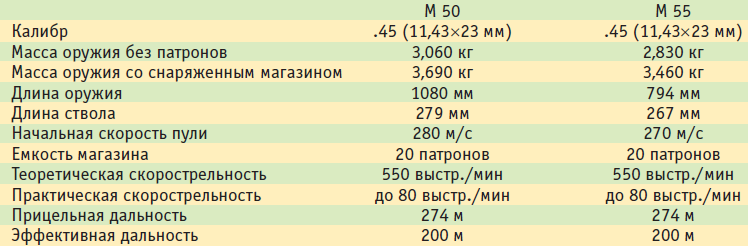 Тактико-технические характеристики пистолетов-пулеметов «Reising»