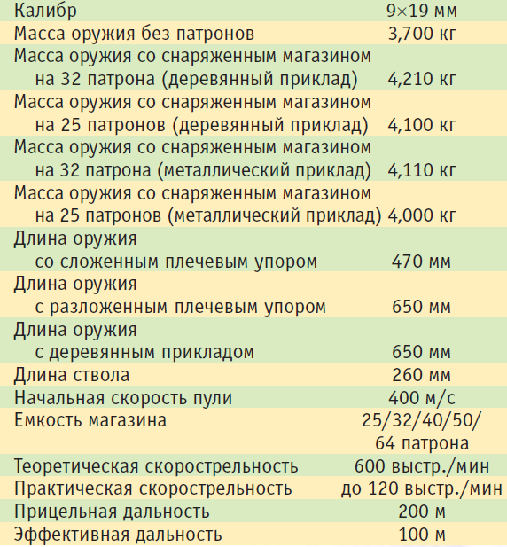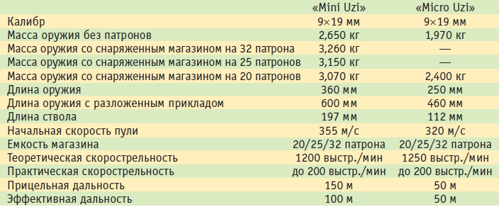 Тактико-технические характеристики пистолетов-пулеметов «Mini Uzi» и «Micro Uzi»