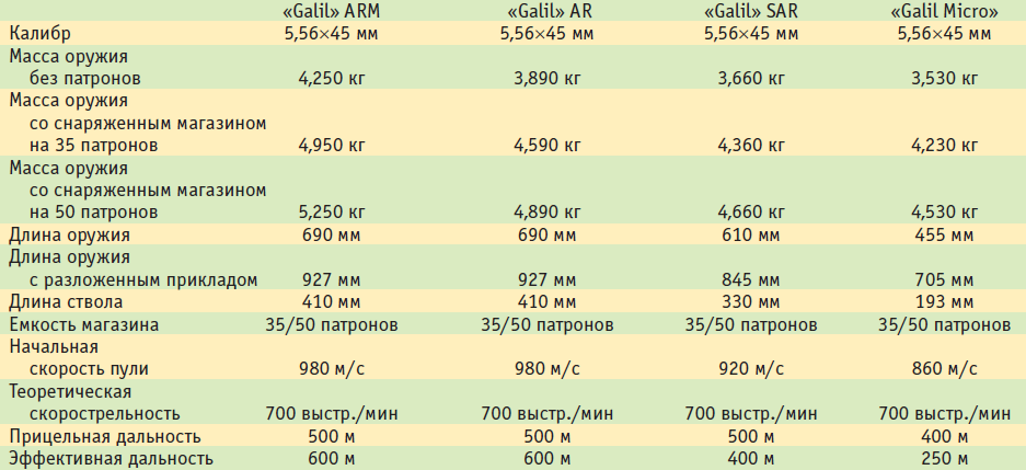 Тактико-технические характеристики винтовок «Galil» калибра 5,56 мм
