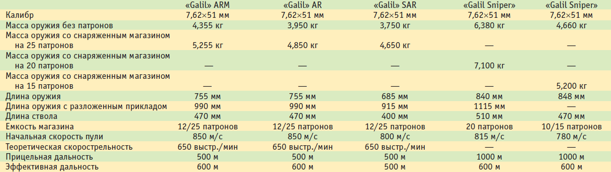 Тактико-технические характеристики винтовок «Galil» калибра 7,62 мм