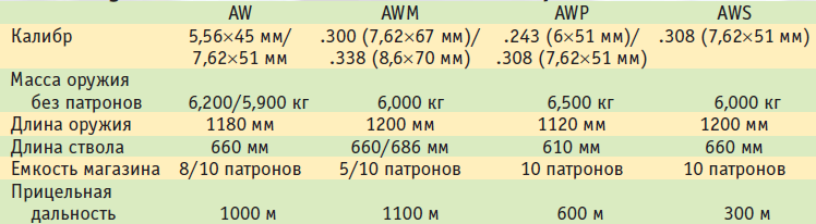 Тактико-технические характеристики винтовок «Accuracy International» обычных калибров