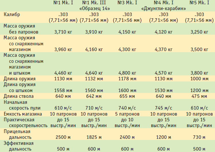 Тактико-технические характеристики винтовок «Lee-Enfield»