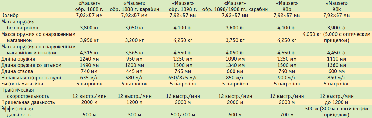 Тактико-технические характеристики винтовок «Mauser» (германских)